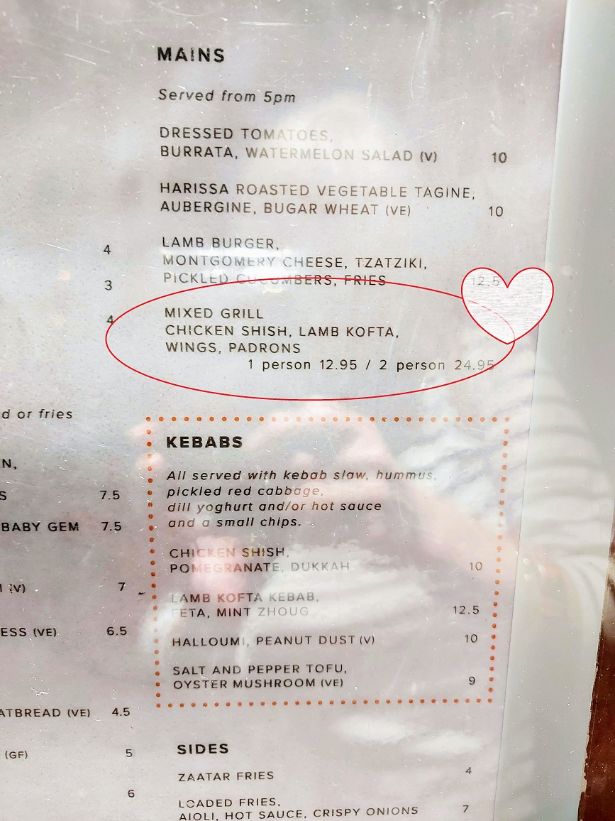 Mixed Grill Chicken Shish, Lamb Kofta, Wings, Padrons